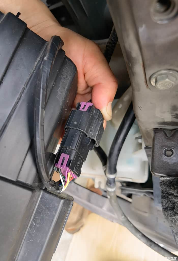 大灯总成所有的固定螺栓拆除后便可将大灯总成向前移出了,注意还有线束连接,不能直接取下来。