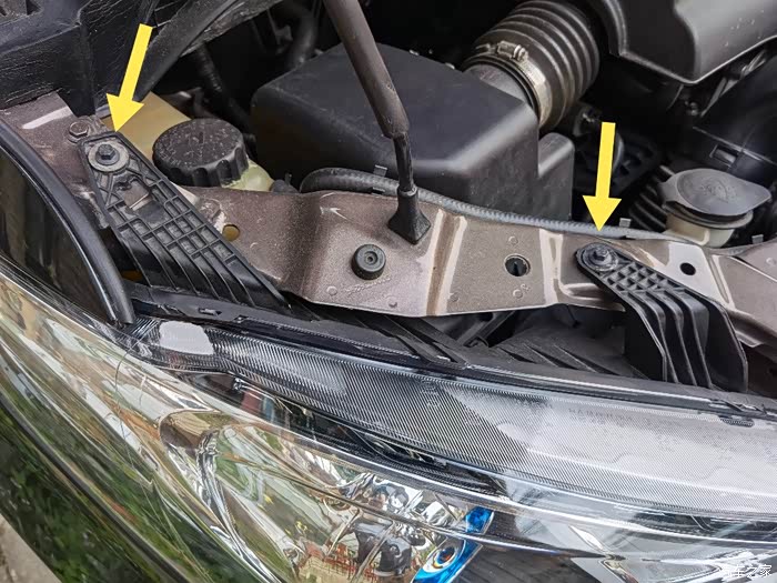在大灯总成的不同方向总共有五颗8mm的外六角固定螺栓需要拆除。