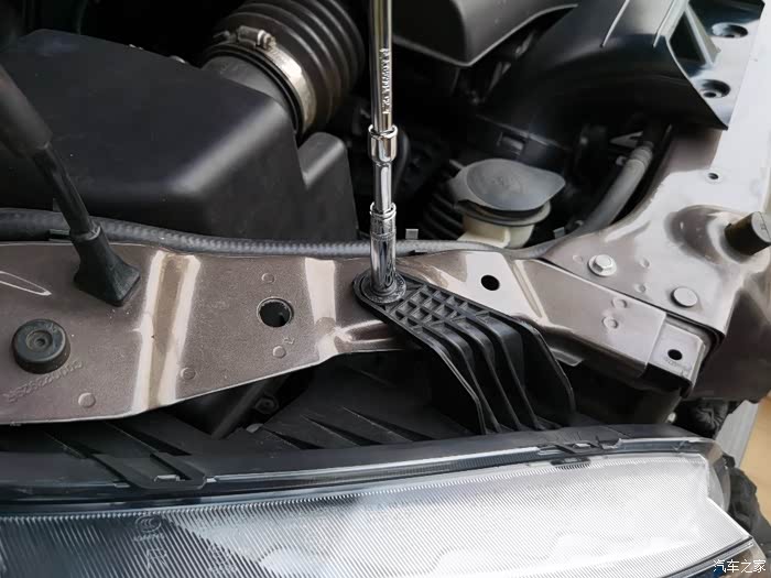 使用8mm套筒扳手将大灯的固定螺栓全部拆除。