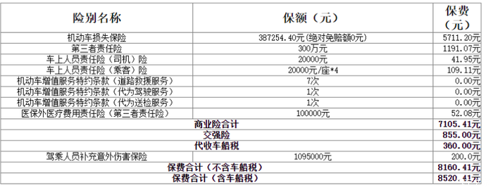 坐标南京,GLC300L, 4S店人保续保,车损,三责300万,座位险2万X5,医保外用药10万,交强险,车船税,优惠过后是6420