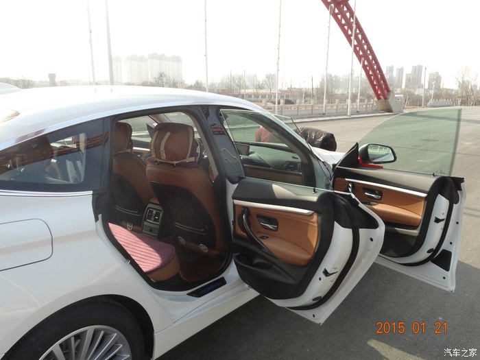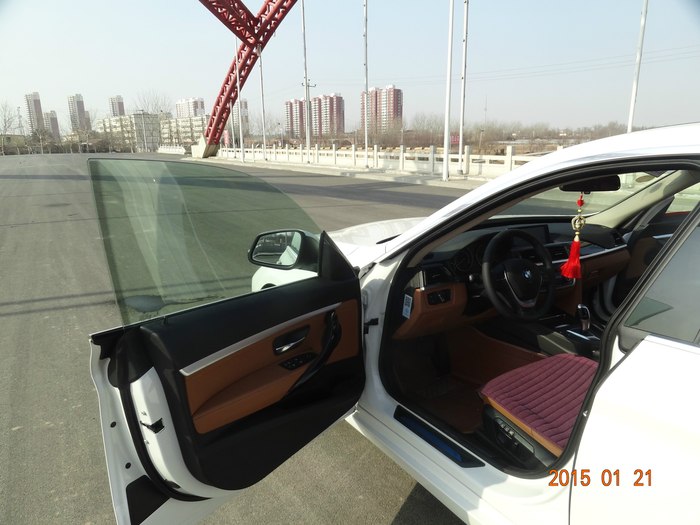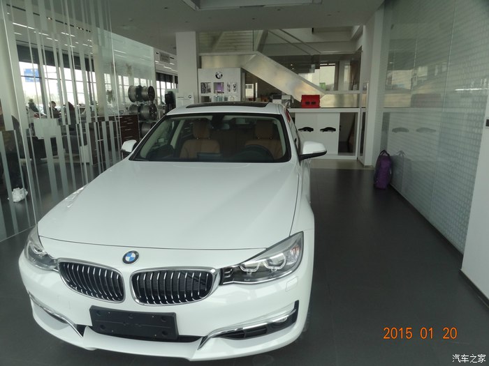 五、宝马3系GT:最后出场的就是今天的主角了—2014款320I豪华。首先看中了3GT那拉风的外表,马上试驾3GT.销售小李挺好的,马上准备帮我们办手续。试驾后便深深的爱上了它。只可惜,当时只有金色,老婆喜欢白色。只能将它深深的藏在心底。回去之后,马上在汽车之家上找优惠价格,前几天唐山搞促销,我马上打电话给之前那个宝马的销售,问能不能优惠17个点,销售说能优惠12个点,最好能来店上谈。第二日大早就和老婆去4S店杀价,结果还是不成,最多14个点。找了个人在济南万宝行,说21号到一辆2014款豪华设计套装版的宝马3GT,优惠17个点,在送玻璃贴膜3M的,全车镀膜,脚垫,后备箱垫,当时有点蒙圈。网上还没有豪华设计套装版啊,吕哥说在宝马中国上能查到。宝马中国上査了査,有OK,当天就交了一万定金, 21号车就到店就可以提车了。于是,又是漫长的等待中........................白外棕内等你等你!!!!!!!