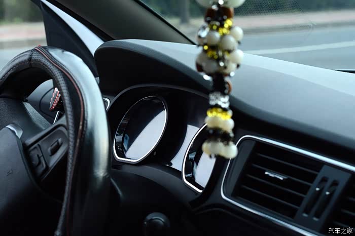 中控台看起来相对简洁,大部分按键集中在中控大屏上,对于一个密集恐惧症患者,这样的设计无疑是最合适自己的。方向盘大小合适,虽然采用真皮设计,但是相对偏硬,握感就有点差异了,所以加装一个方向盘套很有必要的。多功能按键操作比较方便,使用起来也比较顺手。