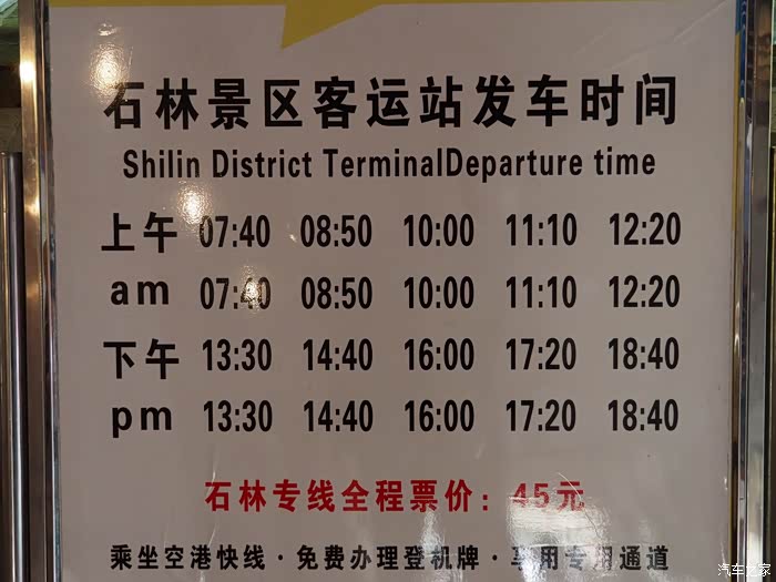 昆明市内有旅游直通车,直达石林景区,票价45元/人/次,7:40-18:40期间,满员发车,车程约1小时。