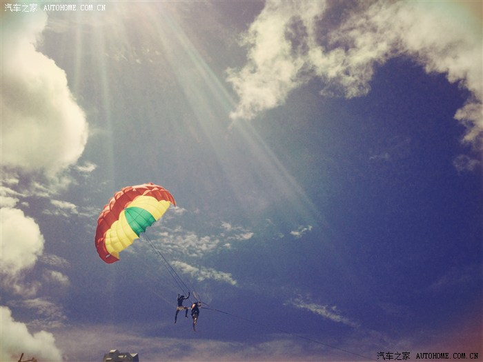 许多年前我在芭堤雅玩过这个,那个是在海上,忽上忽下的挺吓人。老婆这次是在海边玩,跟我说一点都不害怕,切。