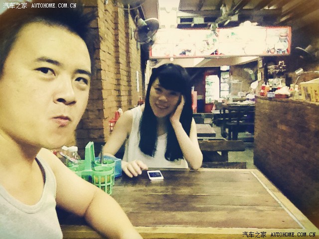 完全不要形象了,就穿个背心在街边的一个餐馆里。夜已深,人很少。