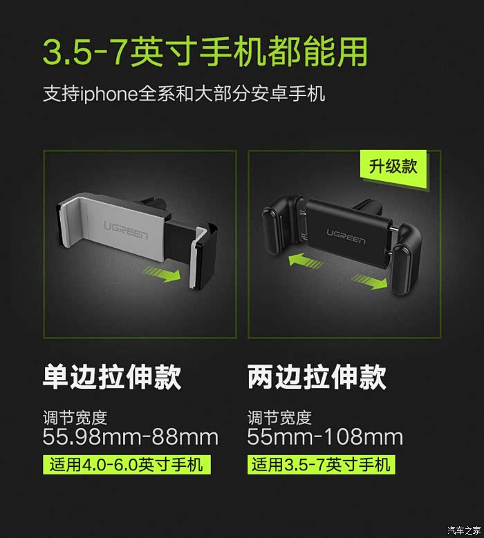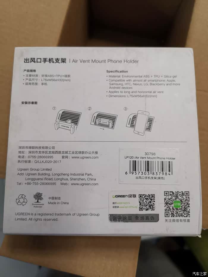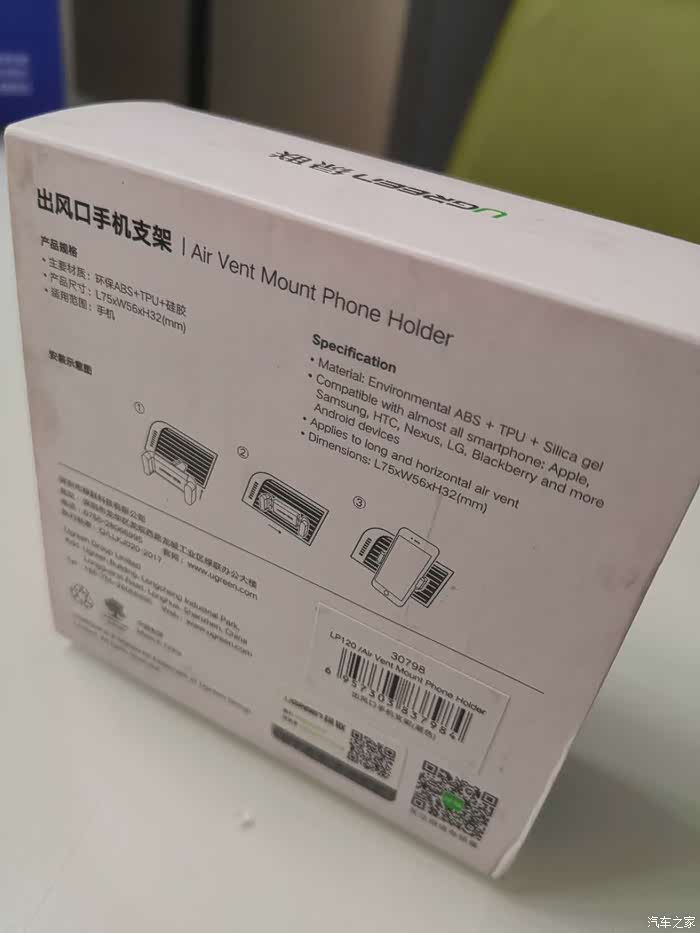 我试用的是绿联的车载手机支架。绿联我最有印象是做数码数据线、转接线等配件的,而且是目前最有品质保证的几个品牌之一,家里的usb延长线、电视HDMI线、读卡器等好几种都是绿联的,这次知道绿联还做车载支架,这应该说明这次的东西品质应该不差,之家还是挺会挑东西的啊。