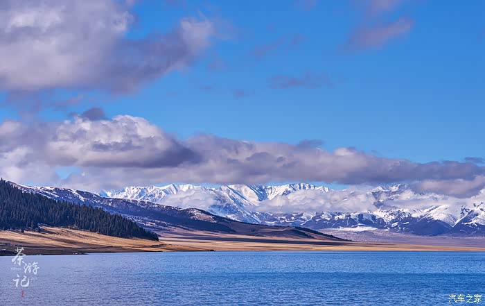 眼下已经是十月下旬,牧草早已泛黄,牛羊也已经被牧民转移到更温暖的地方,湖边空荡荡的,蓝天白云银山碧湖,显得格外脱尘。