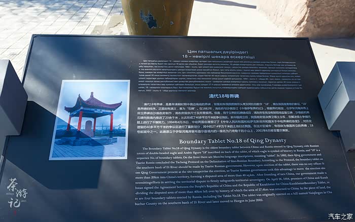 清政府时期的中俄18号界碑。这是根据1881年清政府与俄国签订的不平等《中俄伊犁条约》竖起的界碑,据说由清政府出资、由沙俄政府制作。但是,在埋设界碑时,清政府竟没有派官员到现场监督,俄方乘机将界碑向中国境内推移了20公里,立在伊犁河南岸察布查尔县境内的特奇勒干山上。对此,清政府一直未予承认,拒绝以石碑作为界碑,由此形成了40多平方公里的争议地区