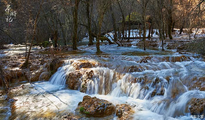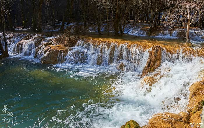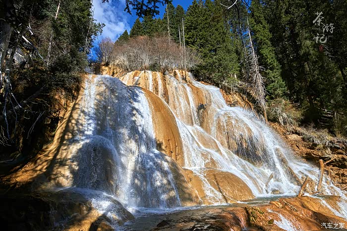 过了瀑布顶,就一路向下了。整个扎嘎瀑布景区就是沿着这个瀑布的水往下走一段。也是钙化地质,但因为有九寨沟在前,这些看看也就寻常了