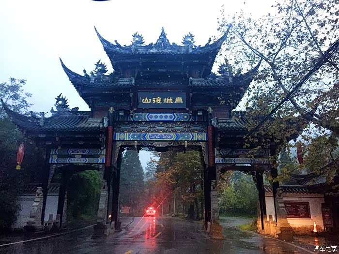 在昏暗的傍晚,我们经过一个类似景区大门的地方。