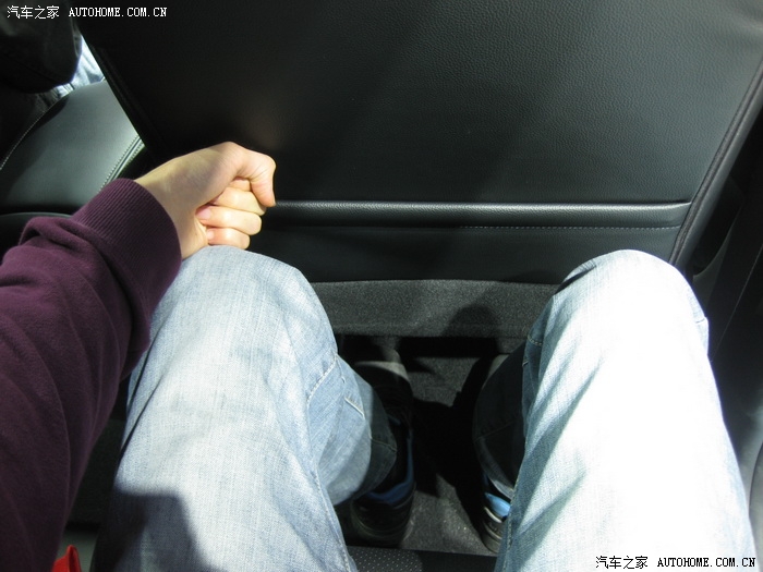 ↑应该有4指空间。因为前边有人。我就不去调好前排再量后排了。对于小型车,空间算不错。毕竟体验者是1.8米的。
