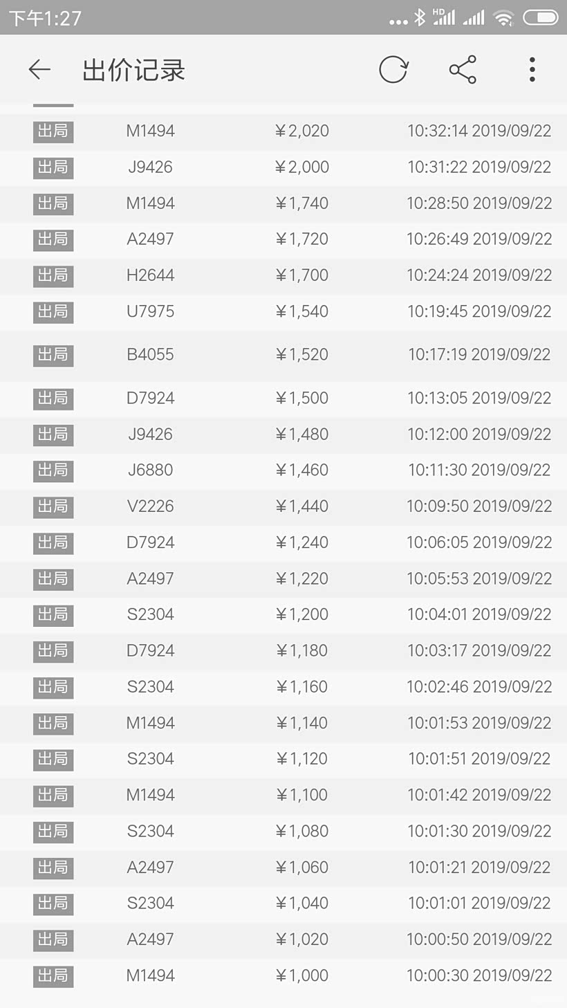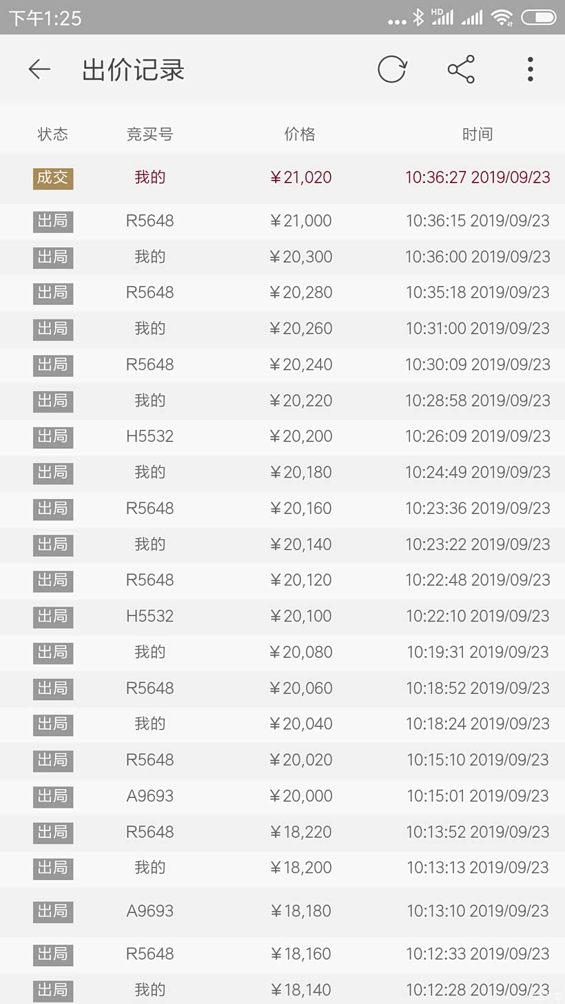 这次拍卖只拍一天,22号这天价格还一万以内我都没有出价。到23号就像打仗一样杀红了眼,价格涨的飞快,本来心里价位是不超过1.8万。谁知道不知不觉就跟着加到21000了。大家看下