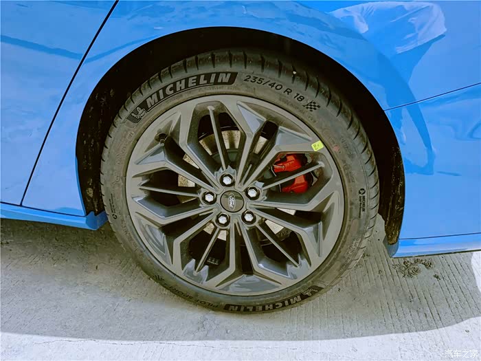 枪灰色轮毂,红色卡钳,运动感十足。轮胎配置特别高,米其林PS4确实给力
