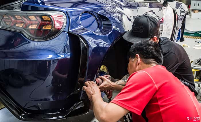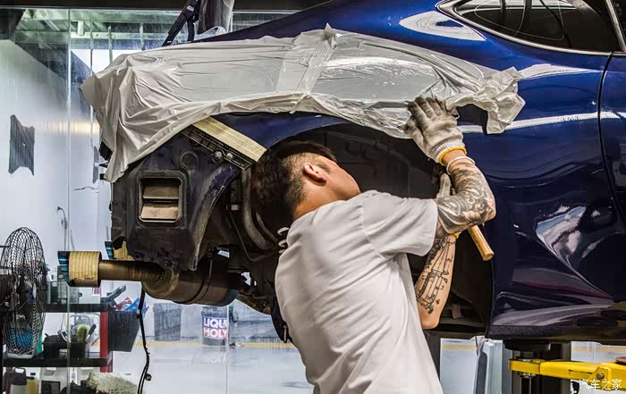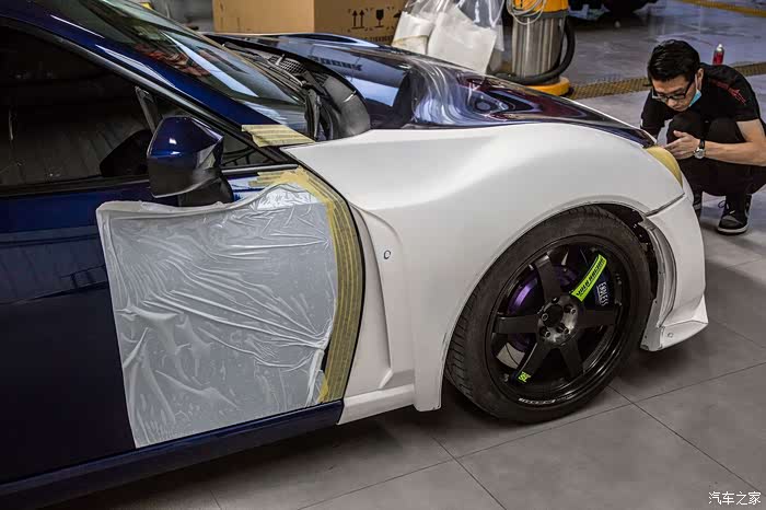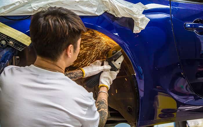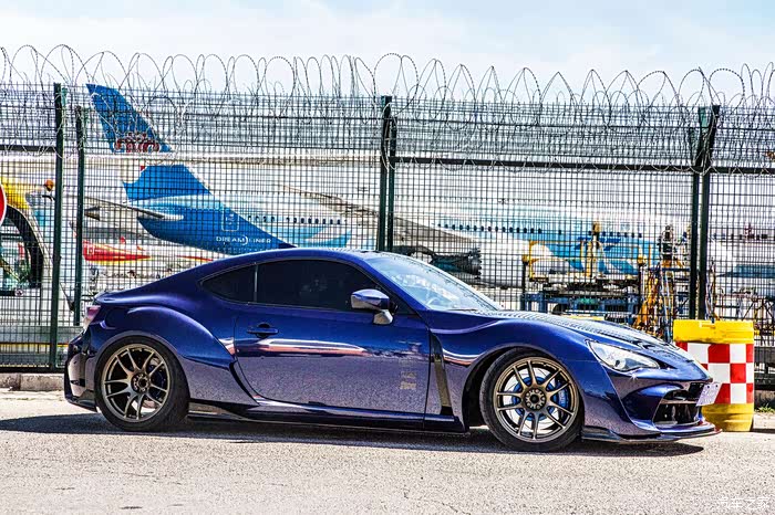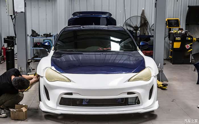 为了装这套ARTISAN宽体忍痛把心爱的格拉苏蒂GO91手表卖了,毕竟车对我而言比手表更重要一些,既然热爱那就付出行动!正品宽体是树脂材料,重量不轻,前翼子板问题不大,直接更换就好,后翼子板需要切割,切的时候心情还是有些忐忑和辛酸的。切完翼子板进行了第一次合位,毕竟是正品,贴合度很高,不需要过多的修正,经过几次合位后进行喷漆,由于这套宽体前唇和尾唇都是和包围一体的,所以喷漆的时候需要双色喷,树脂材料也给喷漆添了一些难度,好在大家集思广益完美的解决了这些问题。在选择避震的时候也下了很多功夫,怕带鱼眼塔顶的避震有异响,KW V3虽然用原厂塔顶,舒适性和操控性都很满意,但最终因为JDM情结还是选用了日本品牌HKS GT4绞牙避震,装完之后没有异响,支撑性很强,舒适性也比预想中要好很多,完美解决了原厂避震过弯侧倾较大和车身高度带来的问题。很多人会问宽体怎么不用气动悬挂,虽然装完宽体后操控会有一定的影响,但是我还是想尽可能的享受86给我带来的驾驶感受,没有选择姿态更好的气动宽体,坚持了绞牙宽体。轮毂选择了WORK EMOTION CR18寸、9.5J、轮胎选择AD08R、265/35R18,前轮数据合适,后轮需要加50MM的法兰,后续还会进行细微调整。