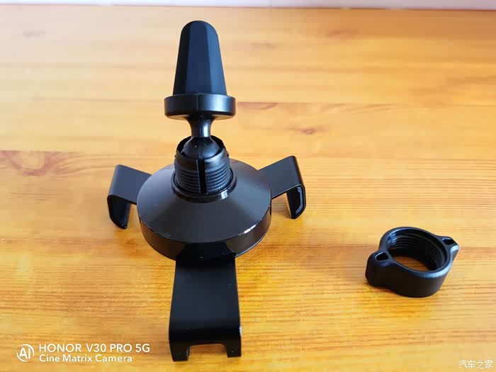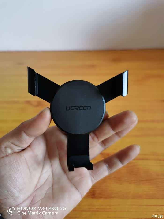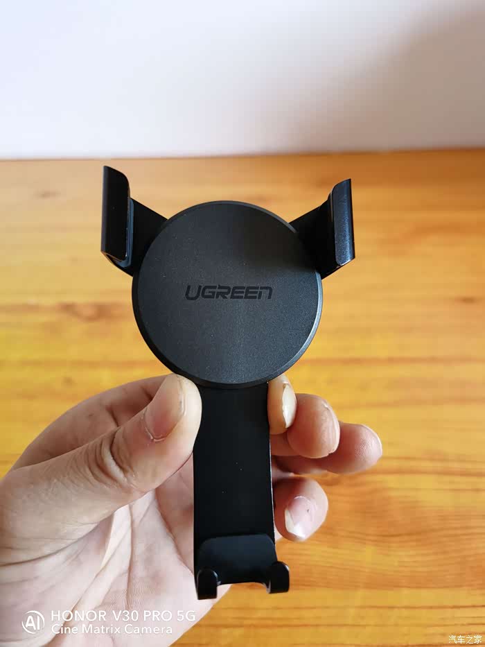 看到的第一眼,好像跟普通的夹扣式车载支架没什么区别,甚至觉得有点松垮,但第一次使用后就觉得挺惊艳的。在还没有放入手机之前,两边的夹臂分隔的距离比较大,适用4-6英寸的手机,可以轻松地单手放入手机,当手机进入之后一松手两边的夹臂就自动收紧,下方承托的夹臂自动下降,整个过程一气呵成,牢牢地稳固住手机