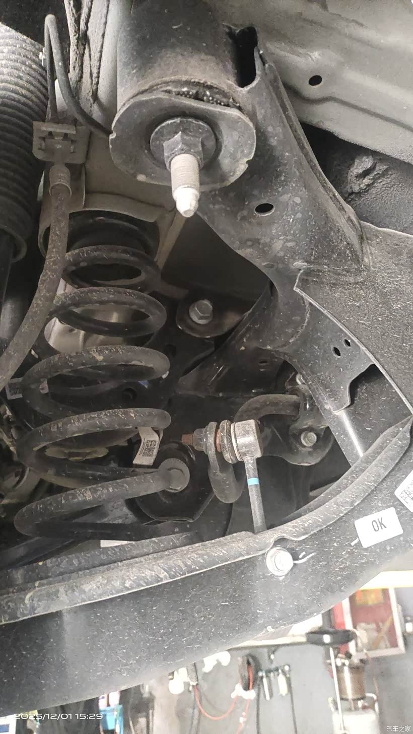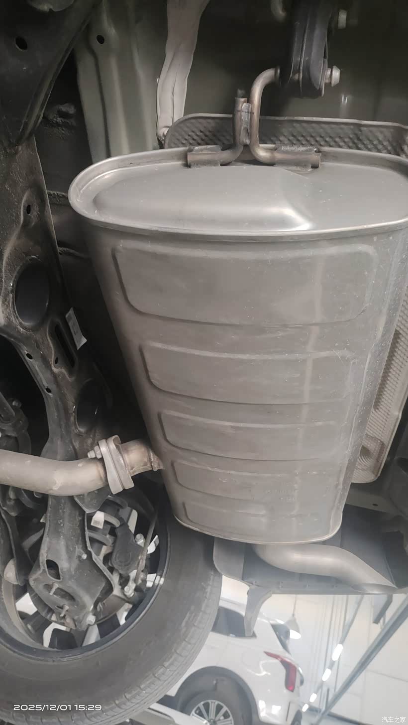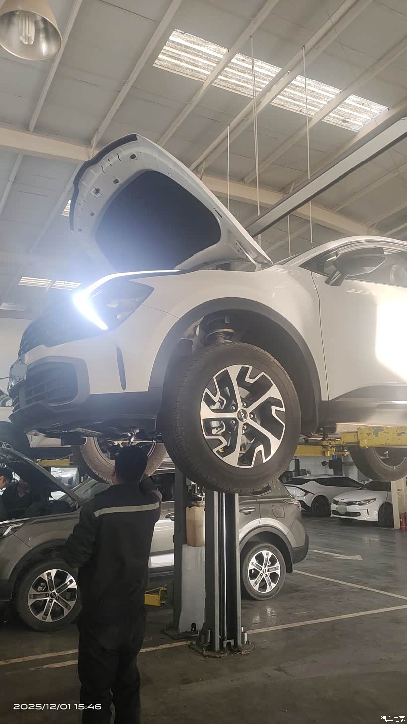 车子举升后,我也顺便看看底盘。还不错,除了一些泥水痕迹,没有发现明显的锈迹。保养师傅拆机滤,放旧油,清洗机油盒,换新机滤芯,装机滤,加新机油,轻车熟路。机油机滤换好了,师傅又把车子举升起来,检查机滤无异常后才安装护板。