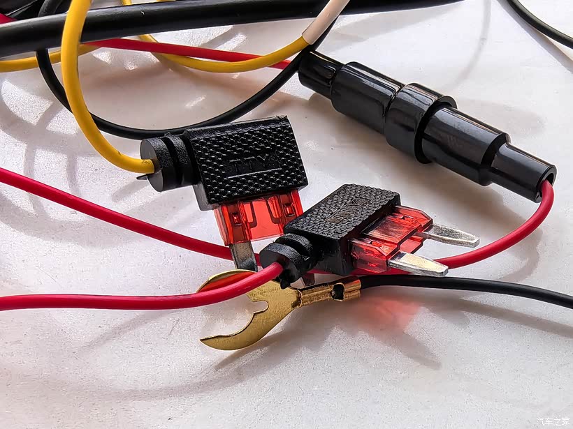 接保险盒的一端是两个端子,一个接ACC正极,另一个接保险盒常电用于24小时监控。