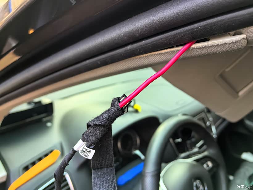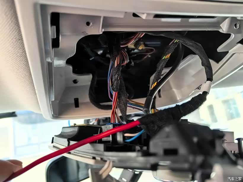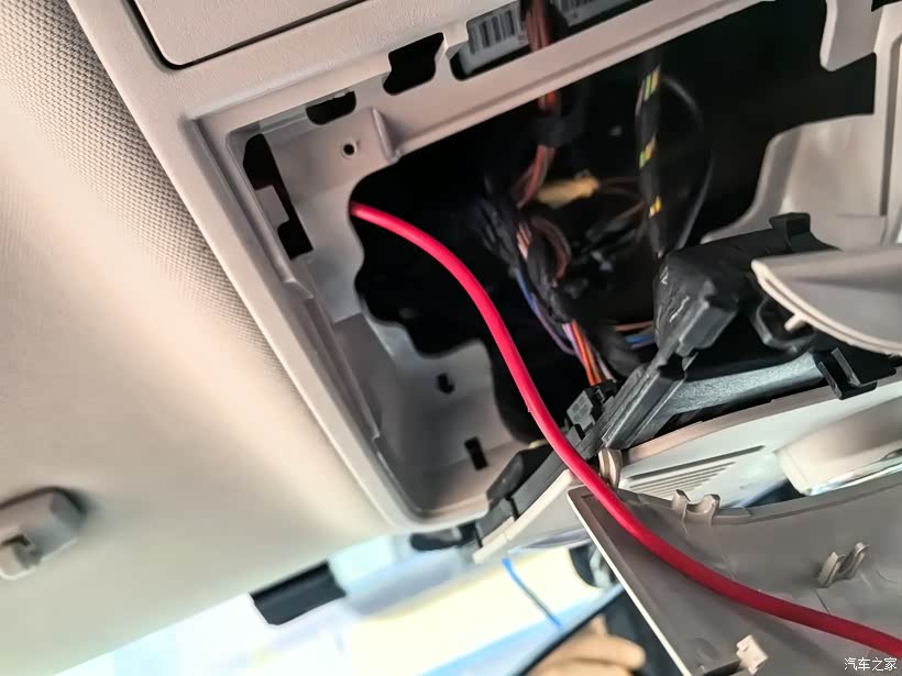 不用拆掉内饰板,只要拆下左侧车门上方的拉手和左侧遮阳板就可以,拆这两个是让左侧顶棚能松一些,便于穿线。