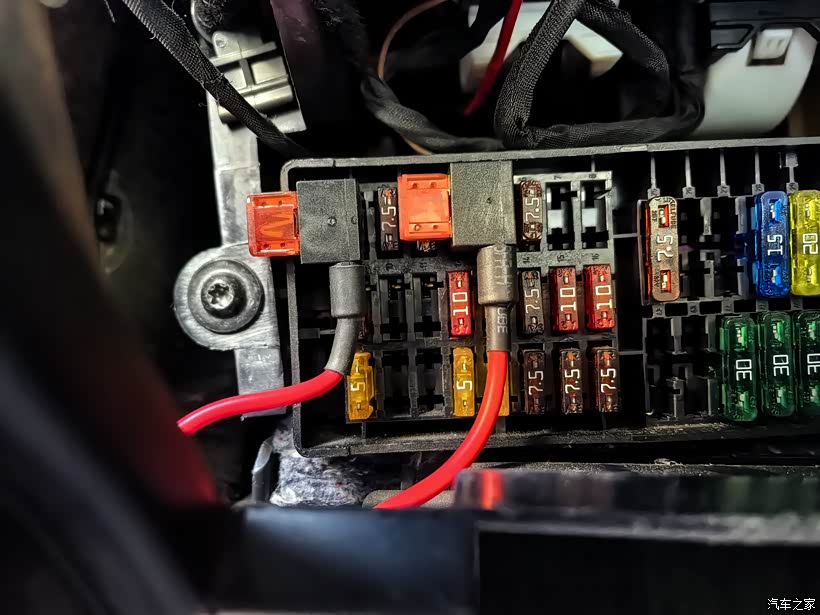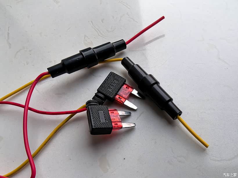 之前剪掉的两根线都接在这种取电插头上了,在插头上装上个7.5A的保险片插在空余的ACC位,到此完工