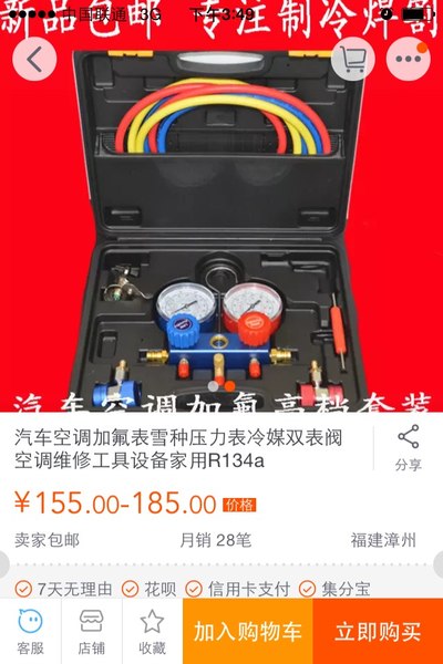 哦,这个。这个压塑机是我同学的。当时我跟他去买的。接头嘛,是家用空调的管截的。以前的汽车空调也用这种接头,之前的车加的雪种不是R134a,加的是普通R22雪种。就用这种接头。