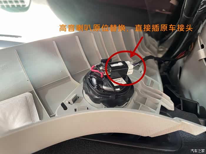 高音喇叭安装在A柱位置,直接原位替换,安装方便。