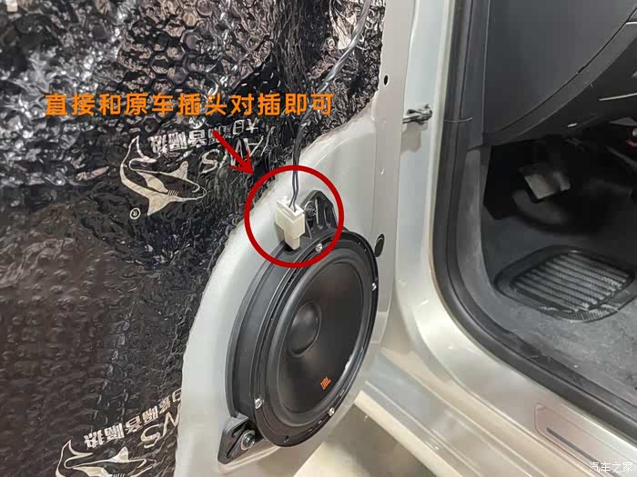 四门喇叭也都是原孔位安装,JBL赠送了专车专用的垫圈,直接装上就可以了,接线就更简单了,直接和原车接头对插即可。