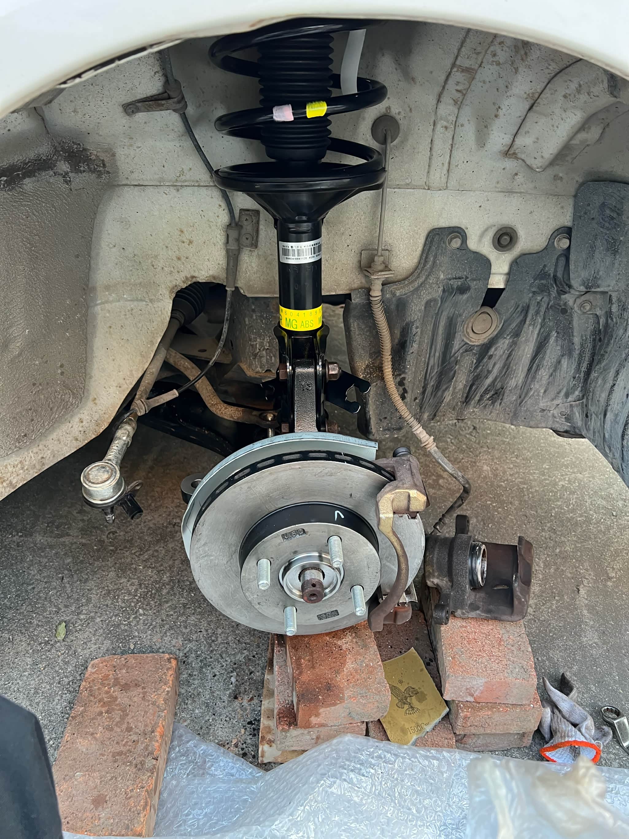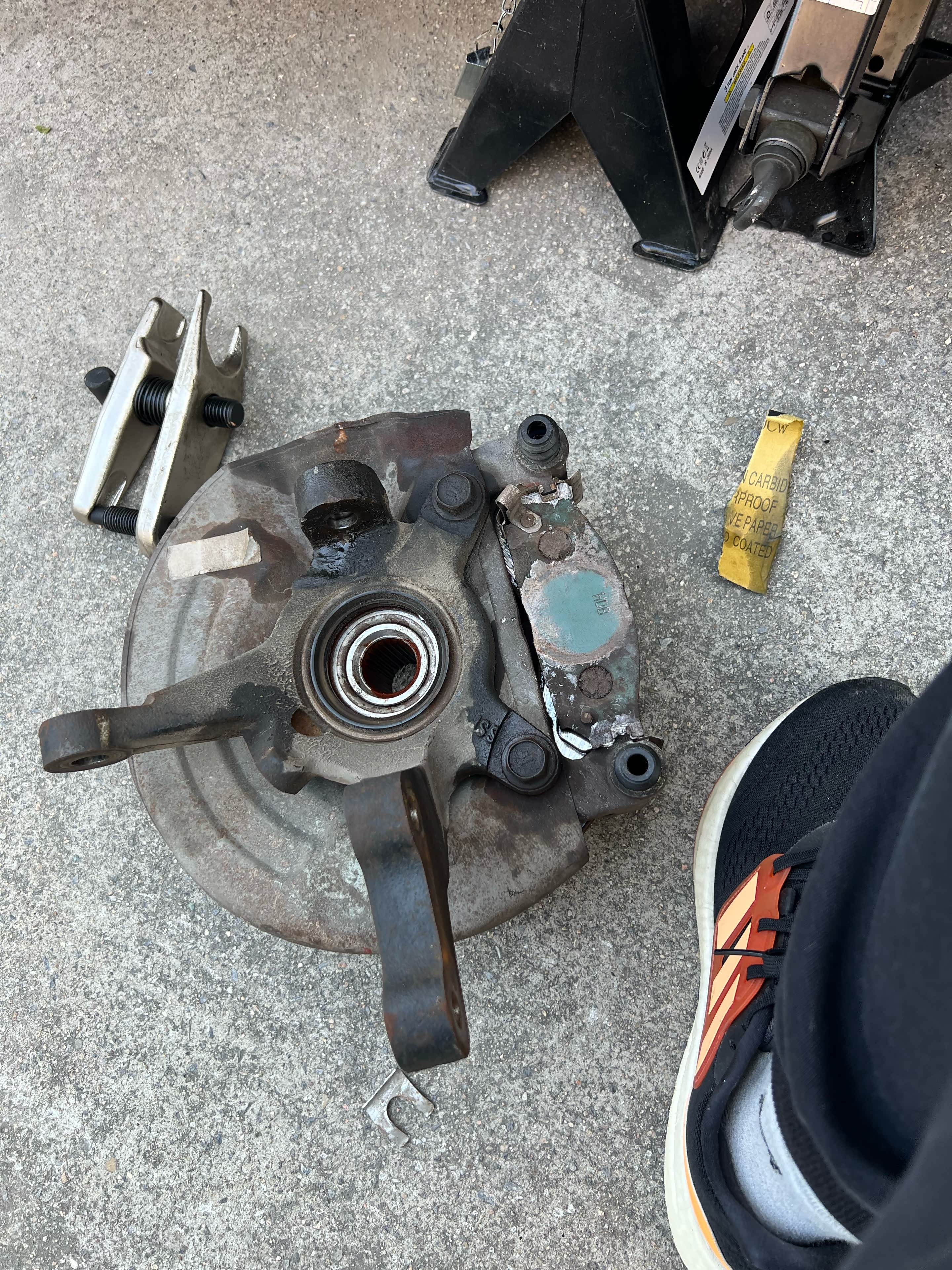 新的转向节加刹车盘总成,两边都换,为啥换一套呢 之前换过一次轴承 施工时候没在现场 修理店应该是用锤子砸的 或者就是压轴承没按标准要求操作 才跑了2万公里 轴承就又嗡嗡响了,而且两边的刹车盘全部变形 这个变形两种可能 一是到使用寿命了 第二就是大脚踩刹车瞬间刹停那种 据说也会导致变形