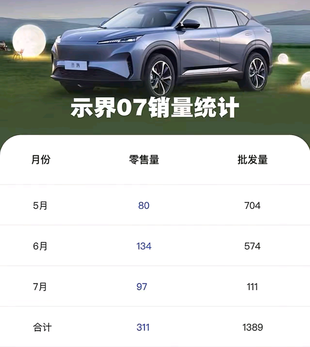 作为标致4008车主,一直关注着法系的销量动态,从刚出的7月份销量出榜来看 示界06销售69台!看到同平台的兄弟车型示界06仅卖出69台,心情复杂。法系在欧洲市场表现不差,但在国内却沦为冷门,原因值得探讨!作为首个中国生产+法系产品+新能源汽车,法系车在国内存在,品控把控上面是一流的,但是对比5、6、7月份示界06销量来看,在6月份销量最佳,也是一个突破,估计大多都是法系老粉回购,开过法系的车友很多还是会选择法系。三个月合计销售311台,7月份销量中下等,在一个新的品牌刚出来的时候这样的销售量,个人觉得还是算中等的,只要继续保持这样的销量,后面崛起很有希望。关键是宣传要到位,很多朋友可能还不知道示界06既然是法系品控!