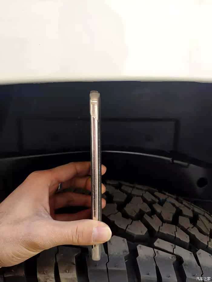 轮胎和轮眉间距没测量 放的手机华为mate9 高度16cm