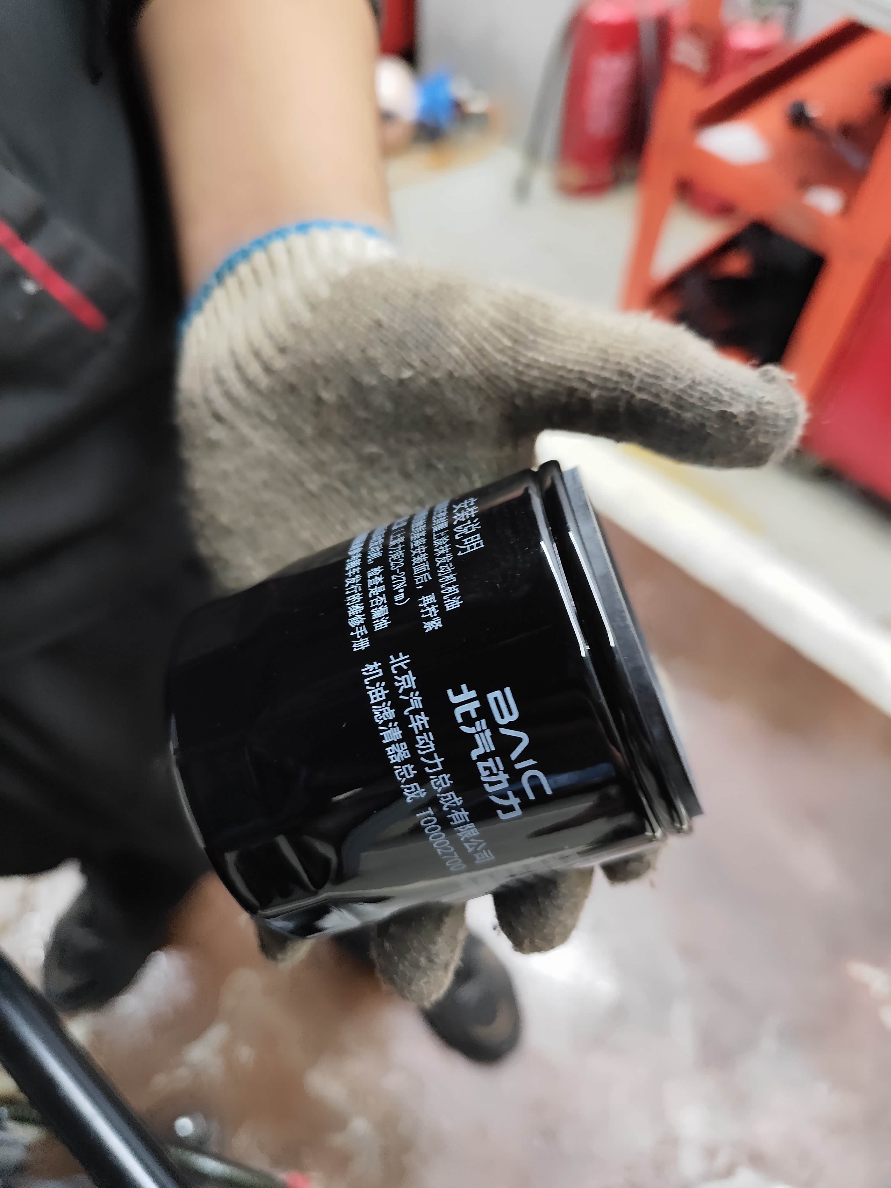 2. 关键的“滤芯”更换: 紧接着,技师的工具伸向了位于发动机下方的机油滤清器。他一边操作一边说:“光换机油不行,这个机滤是关键。它就像个筛子,负责过滤机油里的杂质。旧的里面已经饱和了,不换的话,新机油进去很快就被污染了。” 只见他利落地旋下旧的机滤,在一个崭新的、印有品牌标识的机滤密封圈上轻轻涂抹了一层新机油——这个细节是为了确保安装时的绝对密封,防止渗漏。随后,崭新的机滤被稳稳地拧紧在原位。