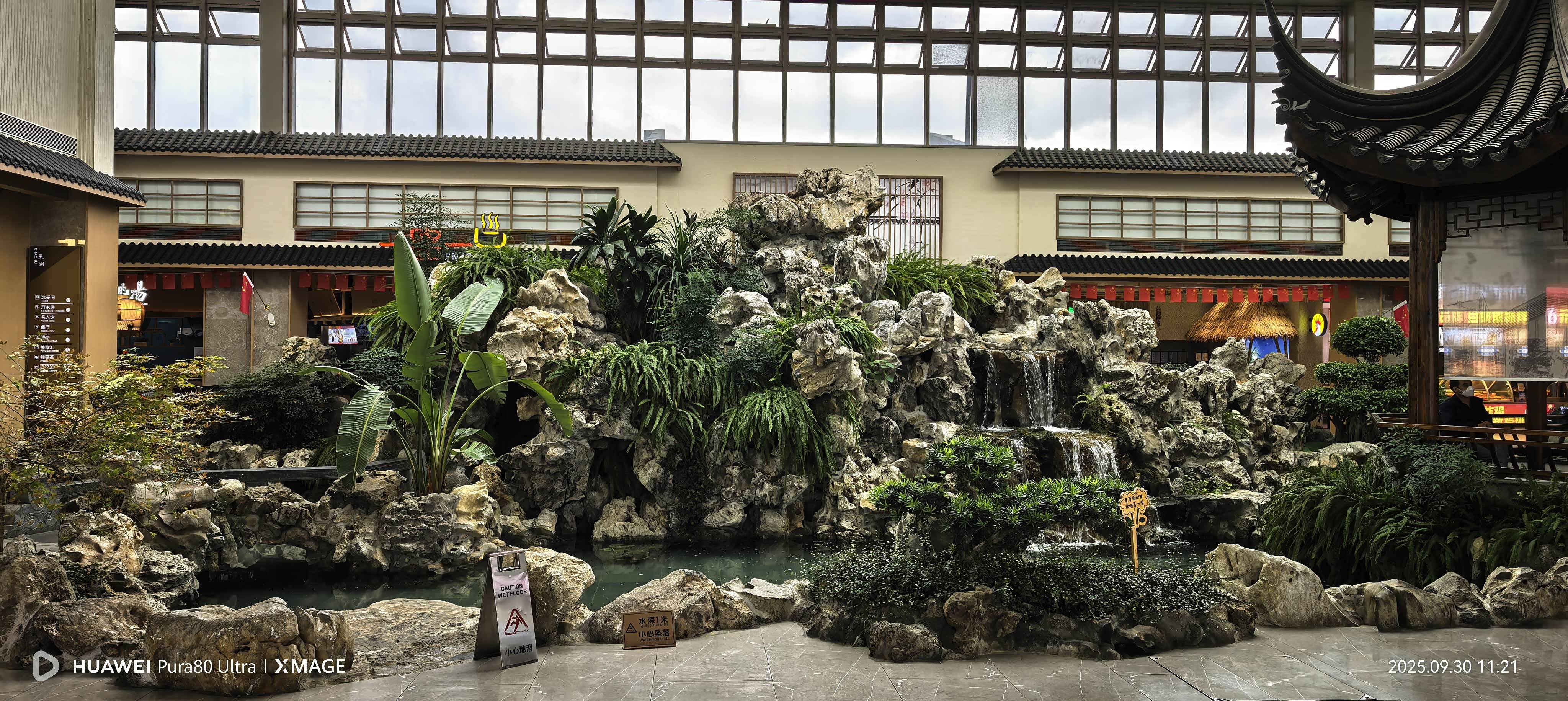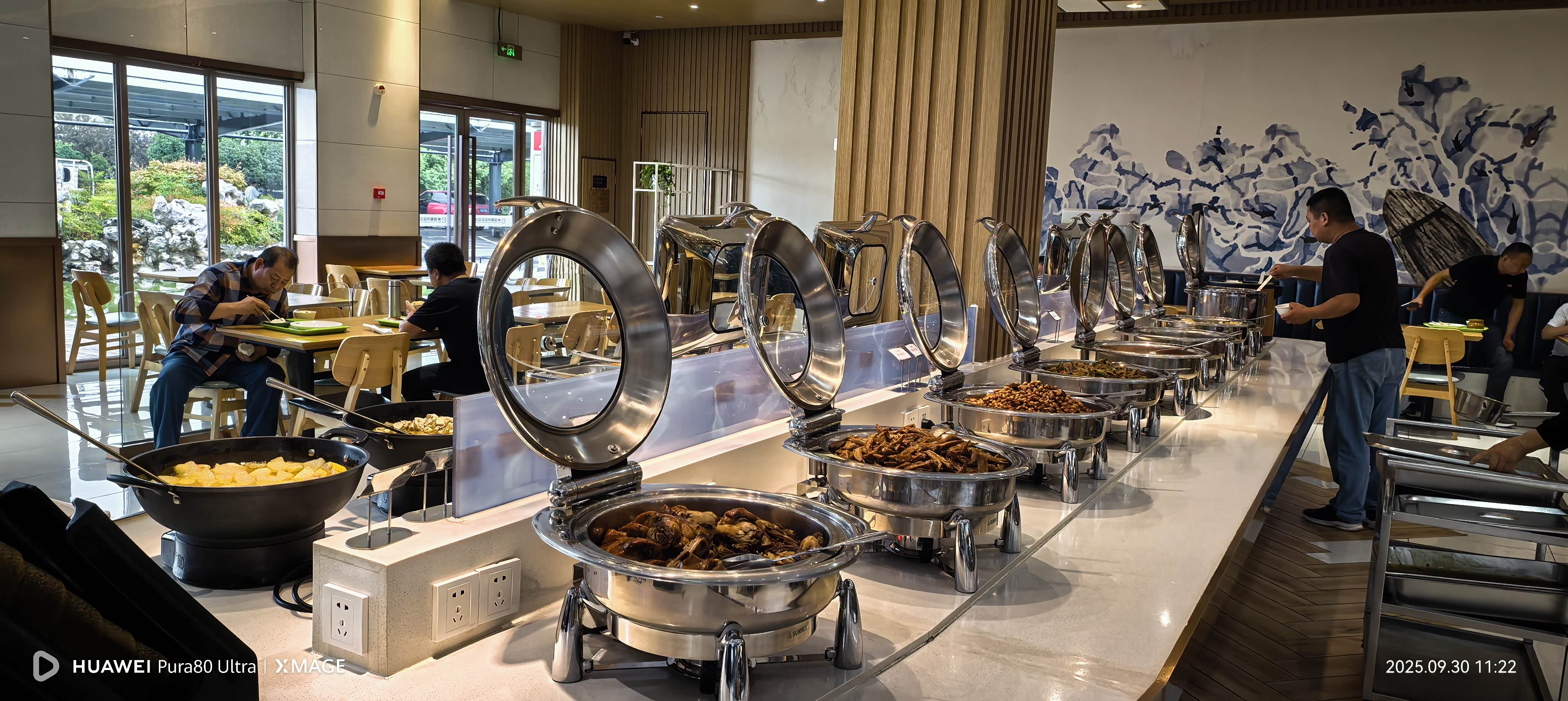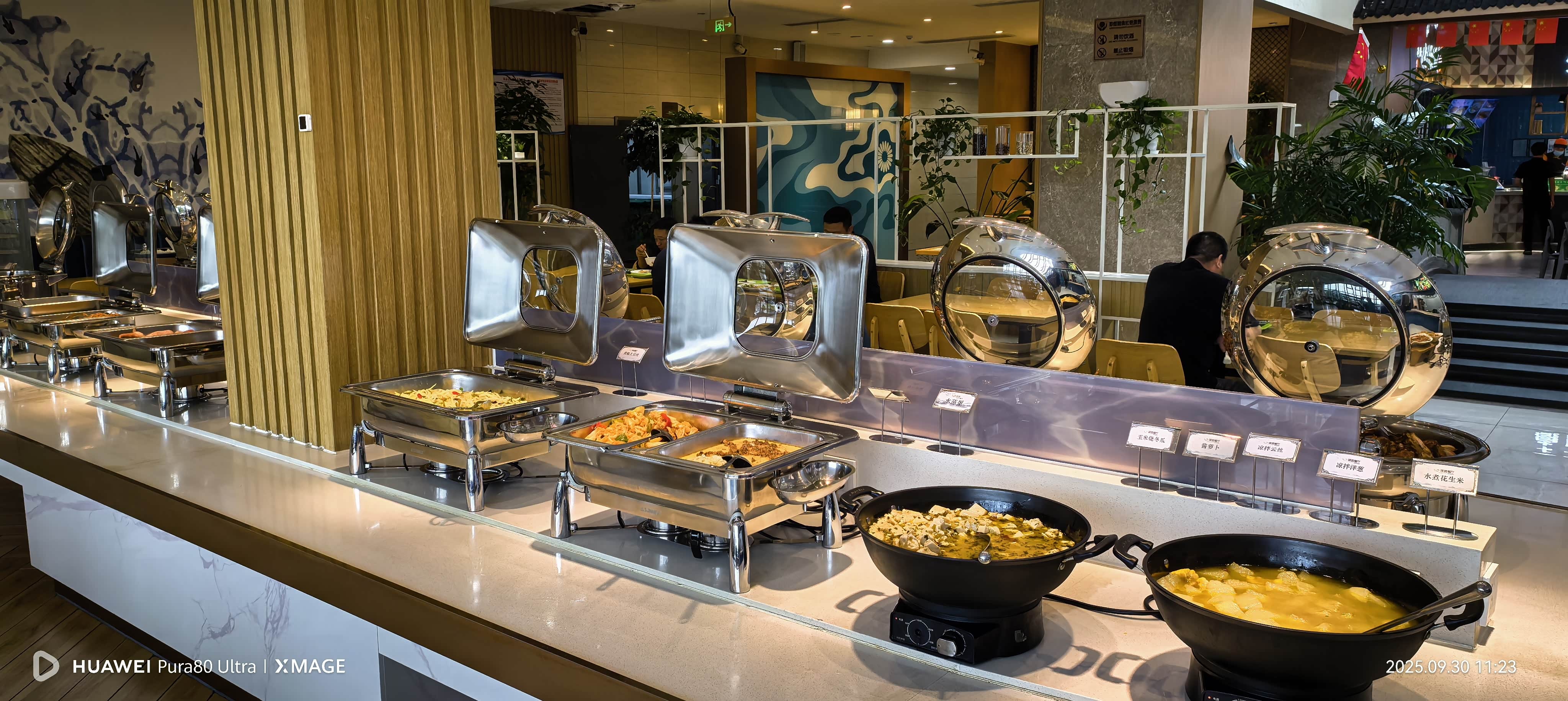 巢湖服务区大门两侧亭台楼阁,江南的意境有了,假山假湖,进大门就可以看到各种徽州美食,还有一个自助餐厅,吃惯了牛羊肉这些重口味的食物,我一下子被美食吸引,看看菜系不错,虽然没有高端酒店做的好,但也是都是我们家常菜一类,39元一位真不贵。