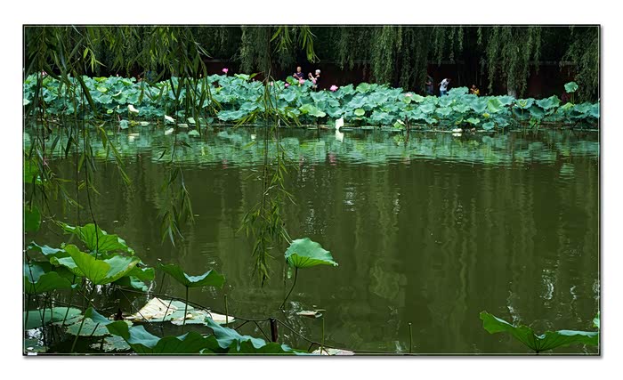 夏至季节,园内绿树参天,鹭雀斗唱,小桥粉荷辉映其间,好似在江南庭院中款款彳亍。