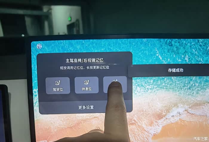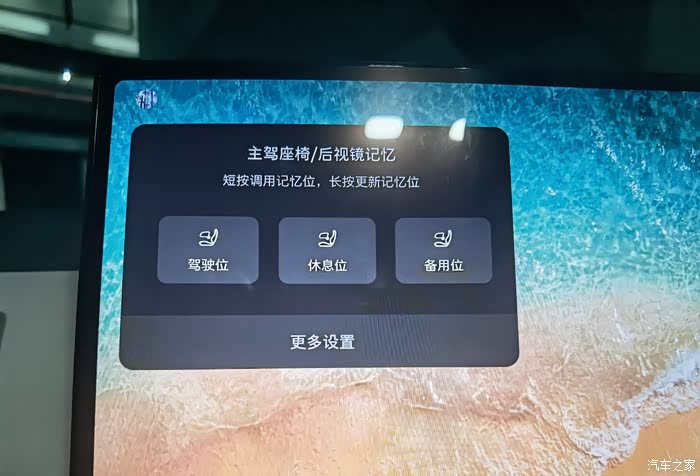 然后我们的屏幕也会自动弹出。我们的这个小方块,里面是,写的主驾座椅记忆