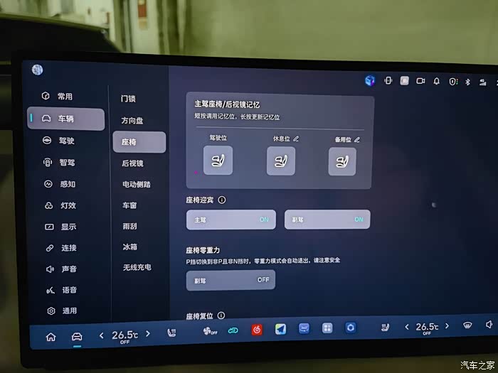 调节到舒适的角度之后我们长按他的驾驶位或者休息位或者备用位,一共可以录入三个人的座椅角度。