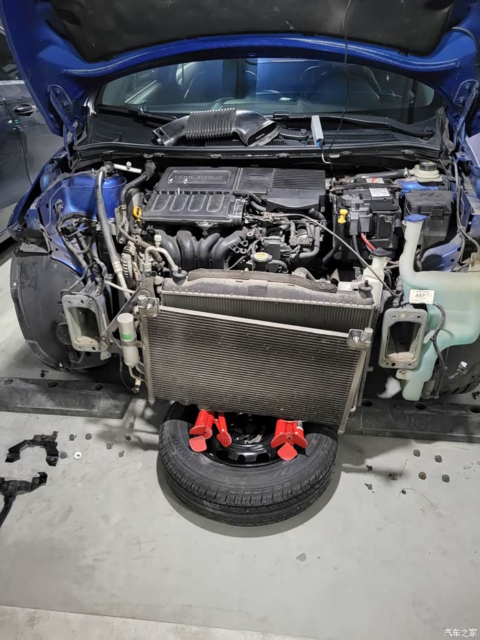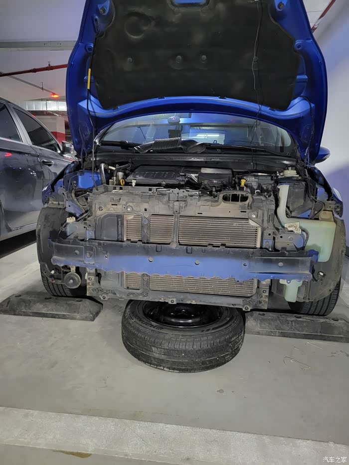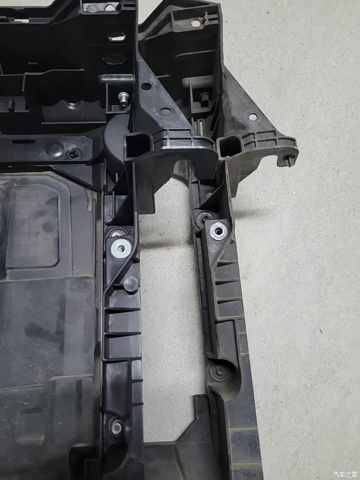 阿宝上买的“原厂”水箱框架,还没装上之前看着就一言难尽了。我个人怀疑,网上买不到真正的原厂配件,因为都是内部渠道特供4S的,私人买到的只能是副厂或者原厂检验不合格流入市场的个别配件。但是没办法,买都买了,花了355元买来的,而且原装的已经开裂,必须要换掉,刚好周末有时间,就在公司地下车库施工了。