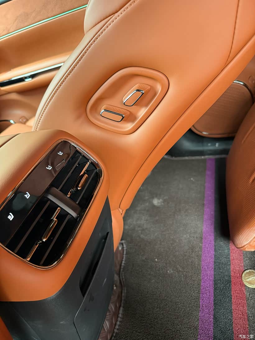 一坐进车里,就能感觉到满满的高级感。座椅是真皮的,柔软又舒服,还有通风、加热和按摩功能,夏天不闷热,冬天不冰冷,跑长途累了还能按摩放松下,这功能简直太贴心了。车内用了很多软性材料,摸起来手感特别好,搭配氛围灯,晚上开车氛围感十足,就像坐在家里的感觉