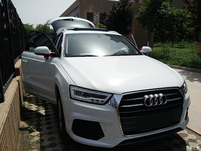 买车前经历了好多,三年前就开始看论坛,各种对比,各种纠结!从十几万看到大几十万,从轿车看到SUV, 这是越看越高,最后还是锁定在20―30万之间的SUV,老婆只要求一点全景天窗.看滴是也不少,什么 奇骏.RV4.科雷傲.科雷嘉.宝沃.X1.Q3.都看了,也试驾了,最后还是定了Q3.主要还是各方面都喜欢。之前的雪佛兰乐风已经开了7年多了,跑了9万多公里,虽然提了Q3,但也没有卖了跟我7年滴乐风,留着换着开。还有买车.看车.提车等……省略十万字……上图