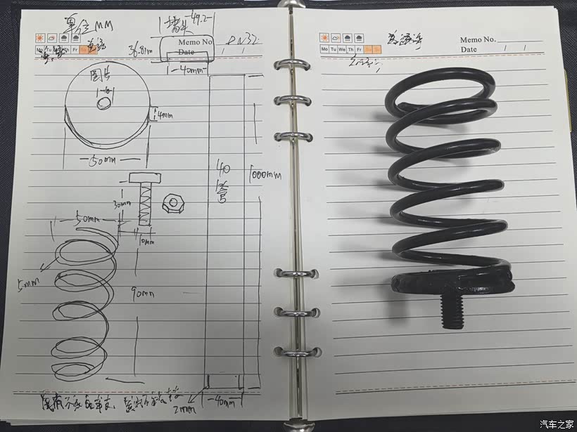 5、还有外径50mm、长度90mm、粗5mm的发黑处理弹簧1个。
