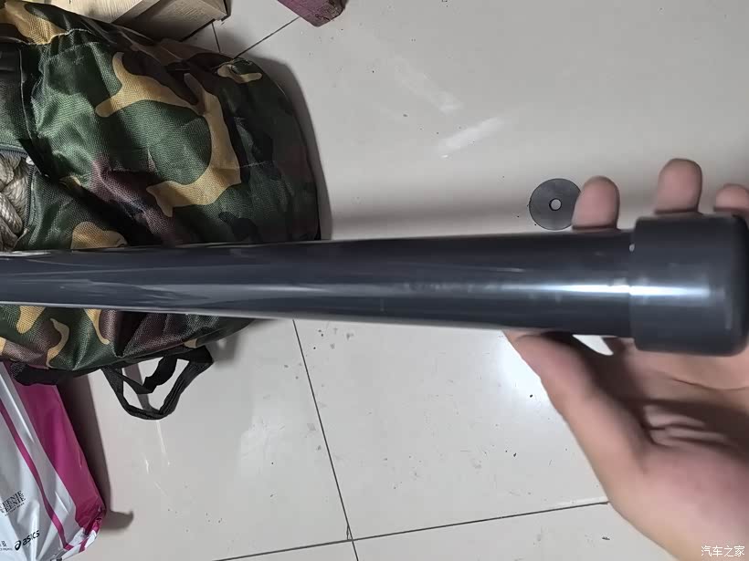 既然市面上的测高工具要么太细,要么太漂亮,要么高度不那么完美,那不如自己造,粗棍配蠢车!思路很简单:效仿小猫的胡须,给车头装一根“可感知、可视化”的延伸参照杆,目测解决测高、找位两大难题。车子是黑色的,那导盲杆必须也是纯黑质感,和车身融为一体不突兀;车子体型大,导盲杆就得做得又粗又扎实,既要抗造耐造,又能形成强烈的视觉参照,这才有了第一代“又大又粗”的黑色导盲杆。