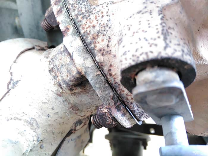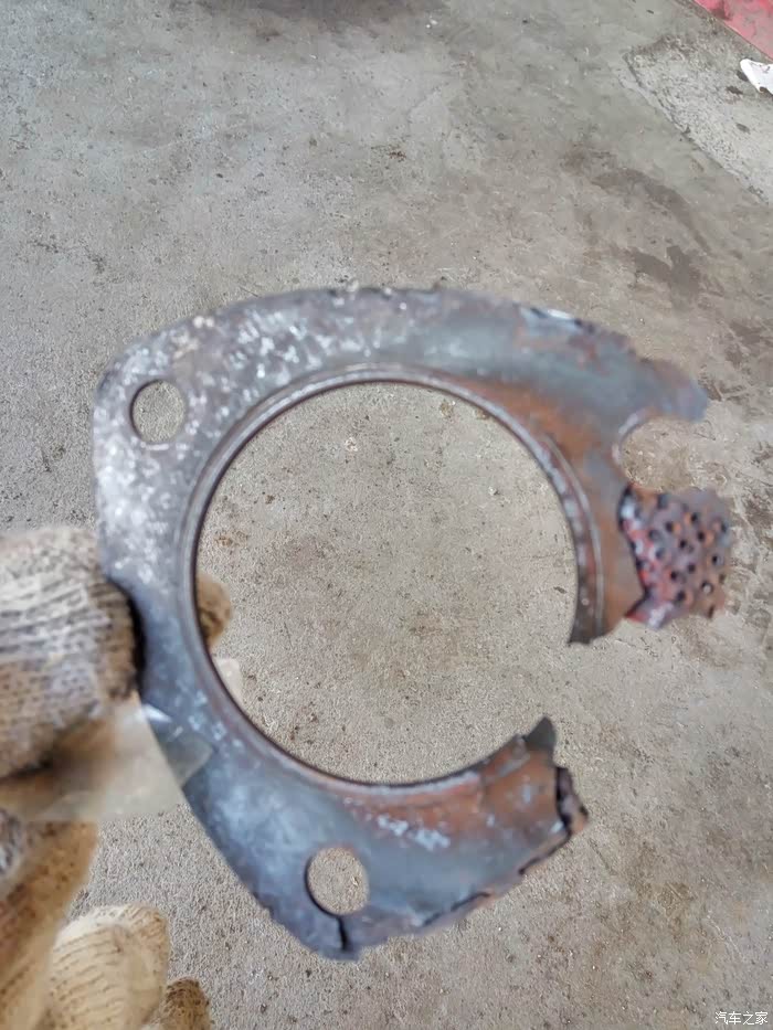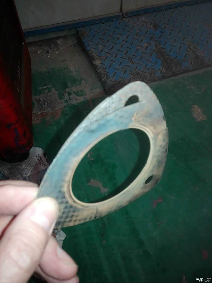 本人的车在三万多公司时在4S店将废气排气管路容易漏气的三个接口位置的密封垫全部更换,过了两年,如今里程已达6.5万公里,估摸又该漏了,但鉴于本人耳聋,发动机机舱的漏气声充耳不闻,在一次长途驾驶中被坐在副驾的夫人听到机舱内正对副驾的位置在大油门时有奇特的声音(万能的主啊,本人虽耳聋,夫人虽不懂车,但上帝赐予本人一个耳朵好使的媳妇),我当时从夫人描述的声响位置就立马判断出是废气排气泄露的声音(虽然未亲耳听到),后来打开机舱,请人踩油门(本人还是没听出异响,主啊原谅这个可怜的人吧),修车师傅已经听出异响,再用手感触气流的位置,判定是涡轮链接三元催化的接缝处漏气(师傅判定的依据是两个,一是只有此处垫片有夹层,夹层内麻纤维之类的物质,容易为烧蚀;二是感觉泄漏的气流),手放在附近,即使不睬油门,都能感觉到强劲的泄漏的气流。接下来就简单了,从顺驰定了预前催垫片,到货安装。拆装时才发现,第一次换装的钢垫烧蚀严重,其质量远不及原厂的质量。