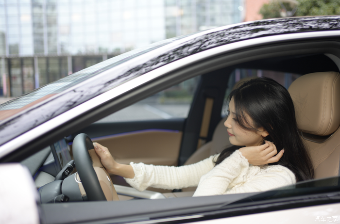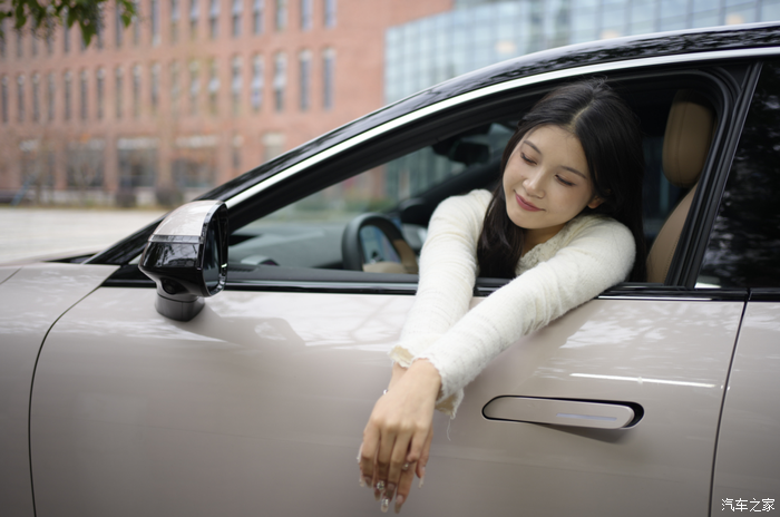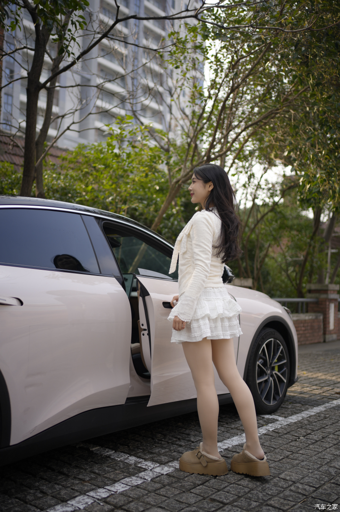 车子的车身尺寸恰到好处,既不会显得过于庞大臃肿,又能提供宽敞的内部空间。从侧面看,姐姐站在车旁,车身的线条与姐姐的身姿相互映衬,美感十足。