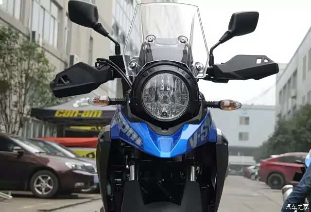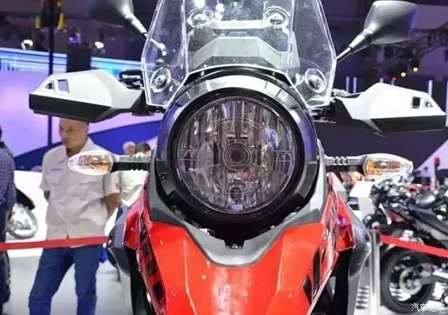 从外观说起,DL250虽说是一款旅行车,但他的外观设计却是一台拉力车的造型,比如鸟嘴还有防护杠什么的,其实拉力车与旅行车本身意义上差别就不大,整车最亮眼的就是前大灯设计,采用经典简单圆形设计,为卤素光源。
