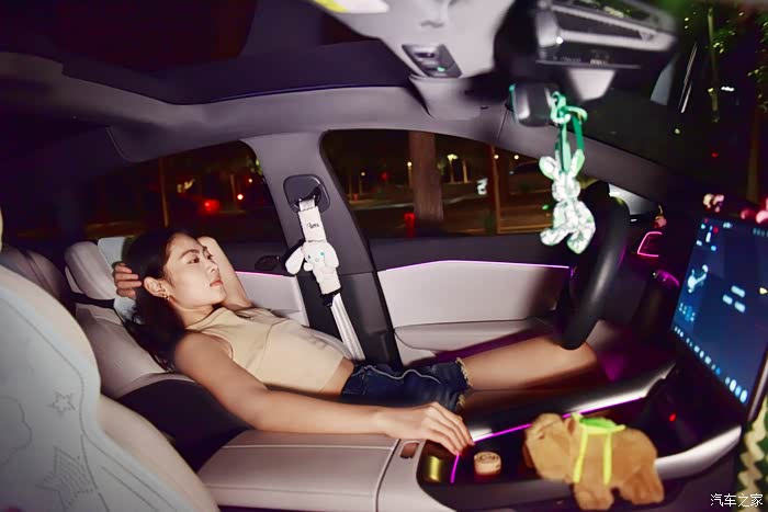 散场后停车场堵车,表妹还炫起了HUD投影功能,反正也出不去,追个剧歇歇脚。这阿尔法S5确实能“整活”!放倒座椅靠背,空调调到舒适温度,结合高品质音响、律动的氛围灯,不得不说,阿尔法S5确实超出了我的想象。