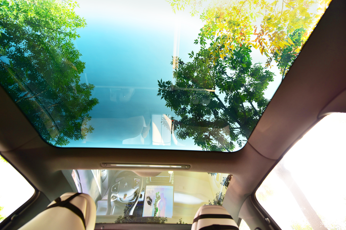值得重点表扬的还有阿尔法S5的HUD,确实让我很惊讶,显示效果真不错。之前试过其他车型的HUD在光线明暗交界的时候会出现不清晰的状况。所以我特意找了有树荫的地方测试了一下,发现光线的强弱对HUD效果没什么影响,看着非常直观且清晰。