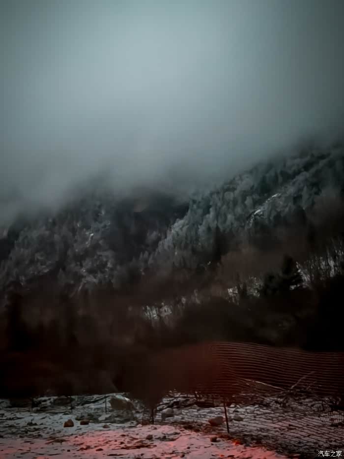 不知不觉,夜幕降临了,天空竟飘起了雪花,那一片片雪花像是飞舞的精灵,给这雪山又增添了几分梦幻的色彩。