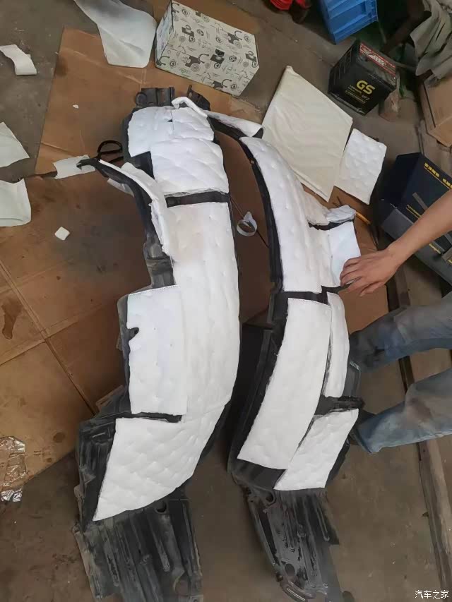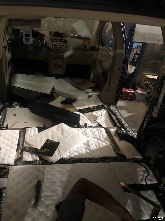 线路解决完了。趁着机会刚好可以吧把全车隔音也做了。毕竟这么多年的车了 原车的沥青隔音确实不忍直视,贵士这车光是把原车的沥青铲除掉。3个师傅做了两天嗷嗷叫。至于品牌的话我用的是大白鲨的。