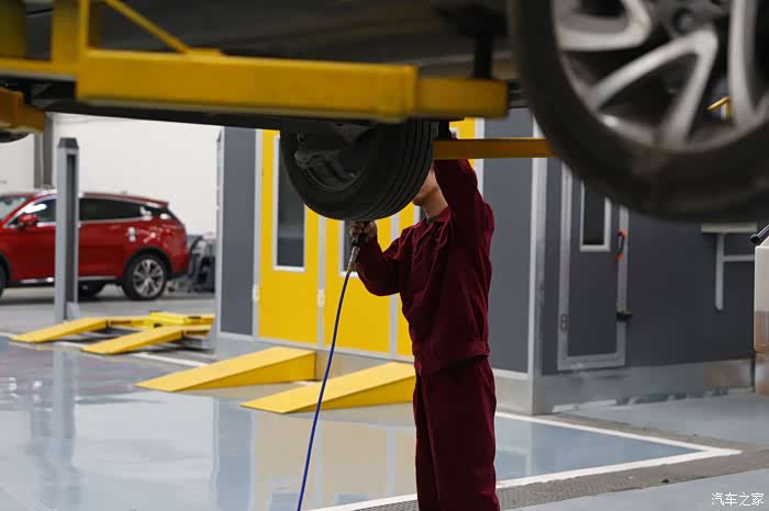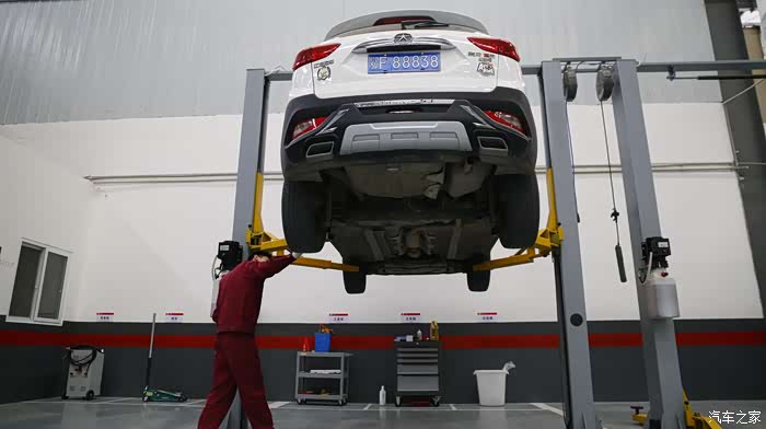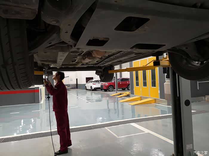 进入工位,把车辆吊起来,首先要进行了基础保养。