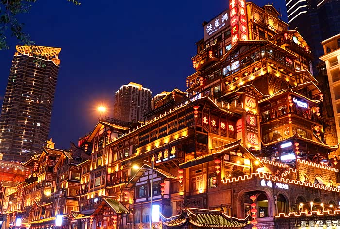 洪崖洞原名洪崖门,是古重庆的城门之一,现在是兼具观光旅游、休闲度假等功能的旅游区。主要景点有动感酒吧街、巴渝风情街、盛宴美食街、异域美食街、吊脚楼群等。