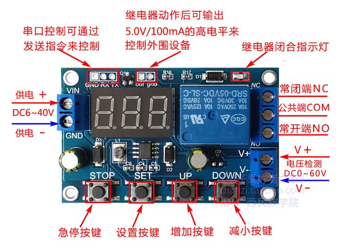 1、电瓶隔离模块设置13.8伏继电器吸起,给副电瓶充电,设置12.8伏断电。实际使用中汽车熄火后ACC断电,模块断电,也就切断了主副电瓶。本来想取消隔离模块,用遥控模块人工连接充电,本人很懒,不想操心人为操作何时充电,何时断电,所以保留了隔离模块,让其自动充电。