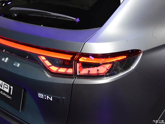 e:NP1极湃1车头的进气格栅采用了完全封闭的设计,这也是电动汽车一贯的设计风格,在发光的LOGO后面隐藏着快、慢两个充电口,这样的设计有利于日常充电的便利性,实用性得到了提升。